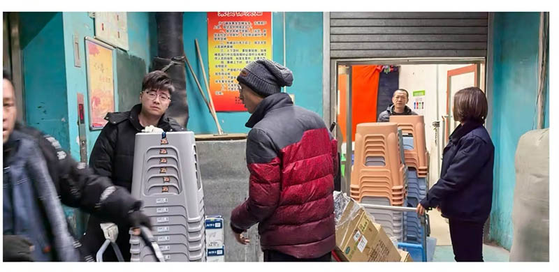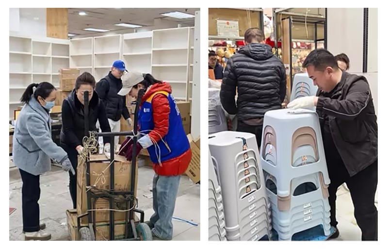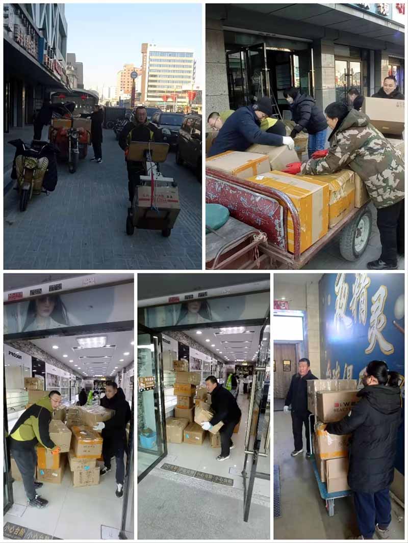 挪騰現(xiàn)場,商場團隊按照既定分工迅速開展工作。信息組與商戶負責人細致核對貨物清單,明確搬運優(yōu)先極與存放要求;搬運組憑借專業(yè)技能,利用肩扛、平板車、手推車等設備,對大型、較重貨物進行安全轉移,對易碎品、精細物品采用特殊防護措施;安置組負責接收、清點、規(guī)劃、擺放。盡管寒風凜冽,面對沉重的貨物和繁瑣的工作,沒有一個人喊苦喊累,始終保持高昂、飽滿的熱情和嚴謹?shù)膽B(tài)度,經(jīng)過數(shù)小時的連續(xù)奮戰(zhàn),原本堆積如山的貨物被安全、高效地騰挪至新場地,且擺放得整整齊齊。