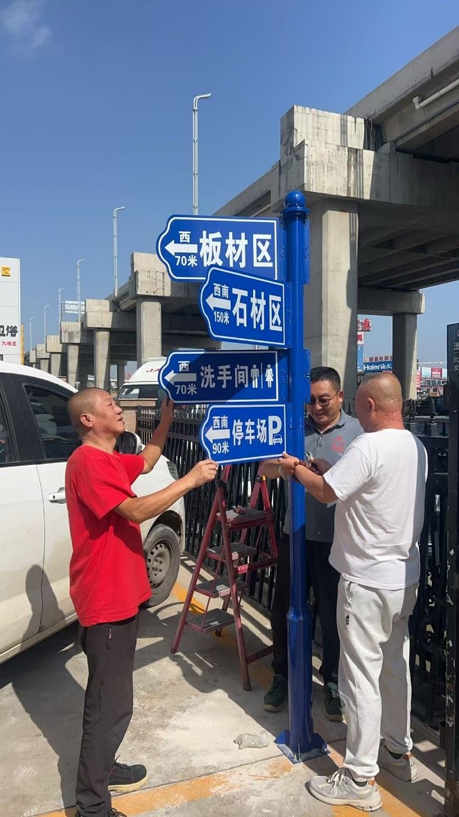 作為本地知名的綜合性建材交易平臺,通達建材市場涵蓋陶瓷、門窗、板材、五金等多個經(jīng)營品類,商戶數(shù)量眾多、經(jīng)營區(qū)域劃分細致。此前,部分新老客戶因?qū)κ袌霾季植皇煜?,偶有找店耗時較長的情況,一定程度上影響了商戶的接待效率。為切實解決這一問題,市場管理方經(jīng)過前期實地調(diào)研,充分征求商戶意見,最終確定了指示牌的安裝方案。